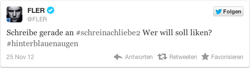 Schreibe gerade an #schreinachliebe2 Wer will soll liken? #hinterblauenaugen