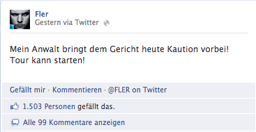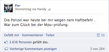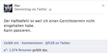 Via Facebook berichtet Fler über den Besuch von der Polizei und seinen bestehenden Haftbefehl…