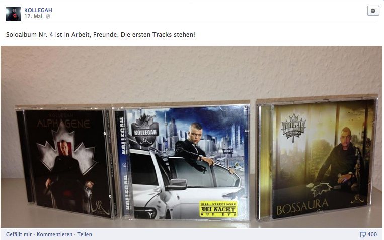 Bisher haben wir leider noch keine weiteren Informationen zum neuen Kollegah Album. Sobald wir aber mehr Informationen darüber bekommen, werden wir euch berichten. Voraussichtlich erscheint das Album im Herbst 2013. Im folgenden der Post auf Facebook von Kollegah… 😉
