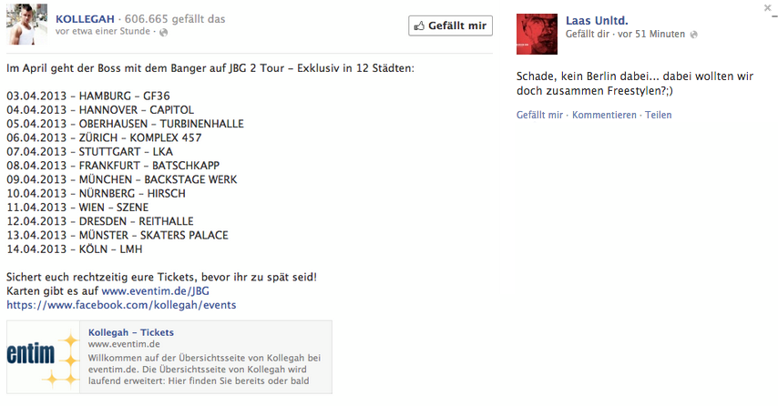 „Schade, kein Berlin dabei… dabei wollten wir doch zusammen Freestylen?;)“