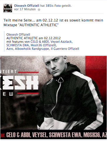 Das Mixtape „Authentic Athletic“ wird ab dem 02.12.2012 erhältlich sein. Sharen und reinhören! Auf Facebook findet Ihr Olexesh unter folgendem Link. Liken und Sharen! 😉