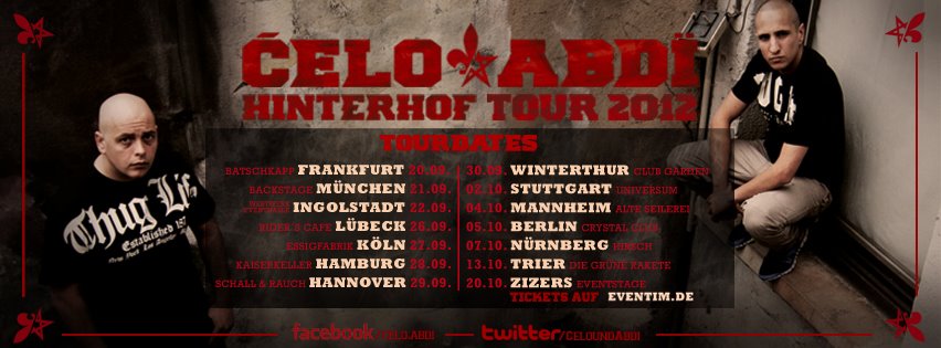 Die Azzlacks gehen auf Tour. Vielleicht ja auch in deine Stadt? Celo & Abdi mit „Hinterhofjargon“ – Tour-Daten… Die Jungs sind vom 20.09.2012 bis 20.10.2012 auf Tour. Vorgestellt wird das neue Album „Hinterhofjargon“. Mit dabei sind Kurdo, Capo Azzlack und Veysel. Hier ein kleines Video-Interview zur Tour! „Hinterhofjargon“ Tour-Daten 20.09.12 – Frankfurt am Batschkapp 21.09.12…