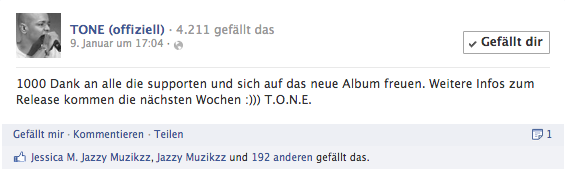 1000 Dank an alle die supporten und sich auf das neue Album freuen. Weitere Infos zum Release kommen die nächsten Wochen :))) T.O.N.E.