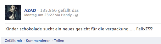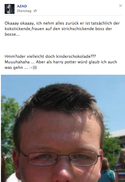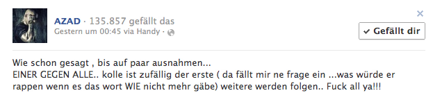 Irgendwann im laufe des Tages muss Azad komplett der Kopf geplatzt sein, da er nämlich am gleichen Tag noch folgendes auf Facebook veröffentlichte: